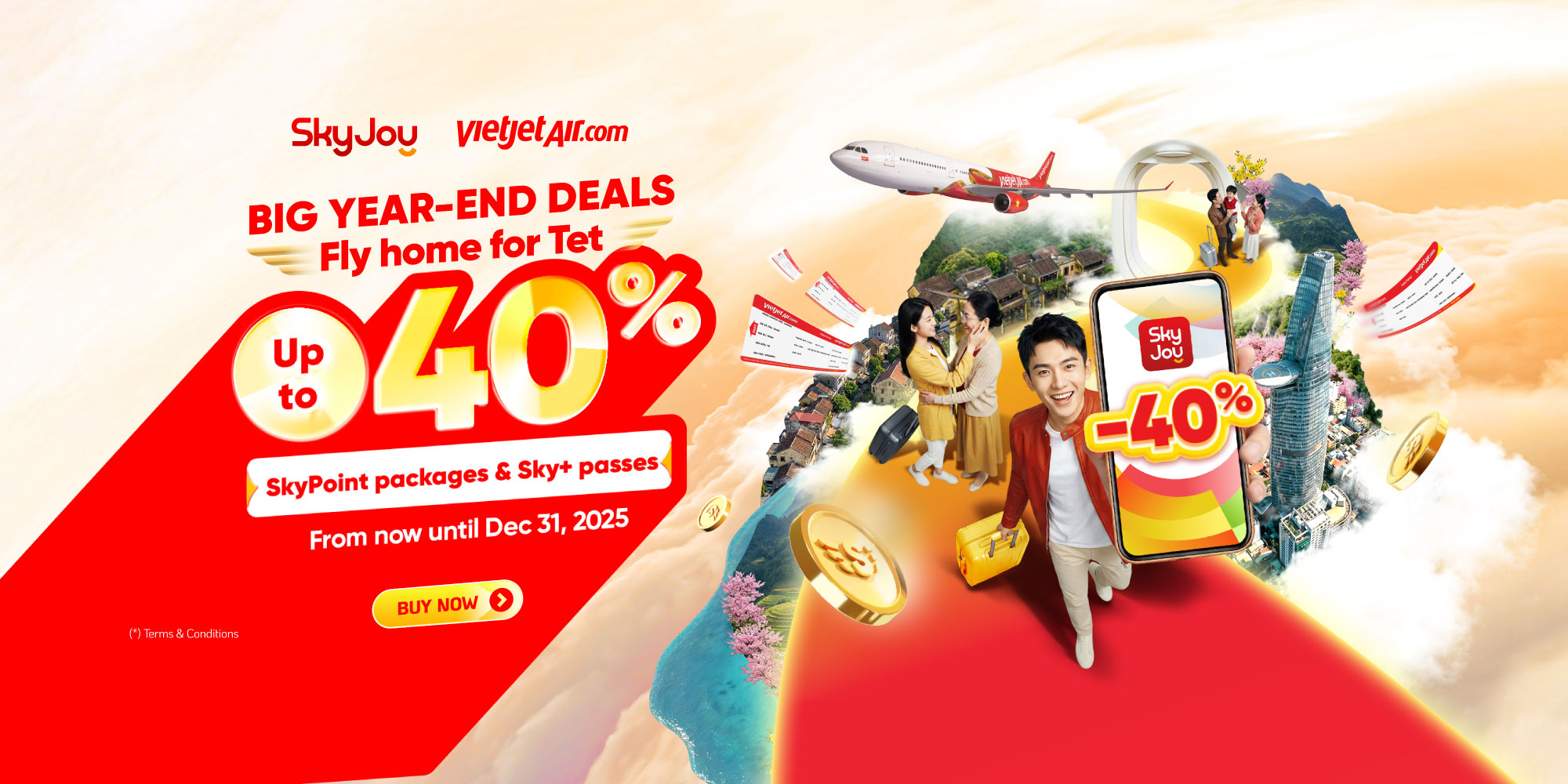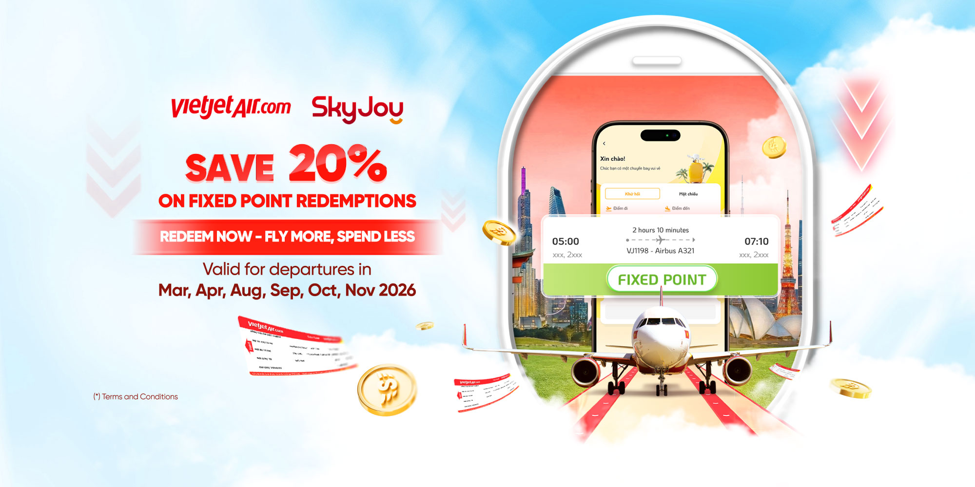 Endless exploration for flight tickets from Vietjet and services from 250+ much-loved brands in Vietnam with SkyPoint redemption