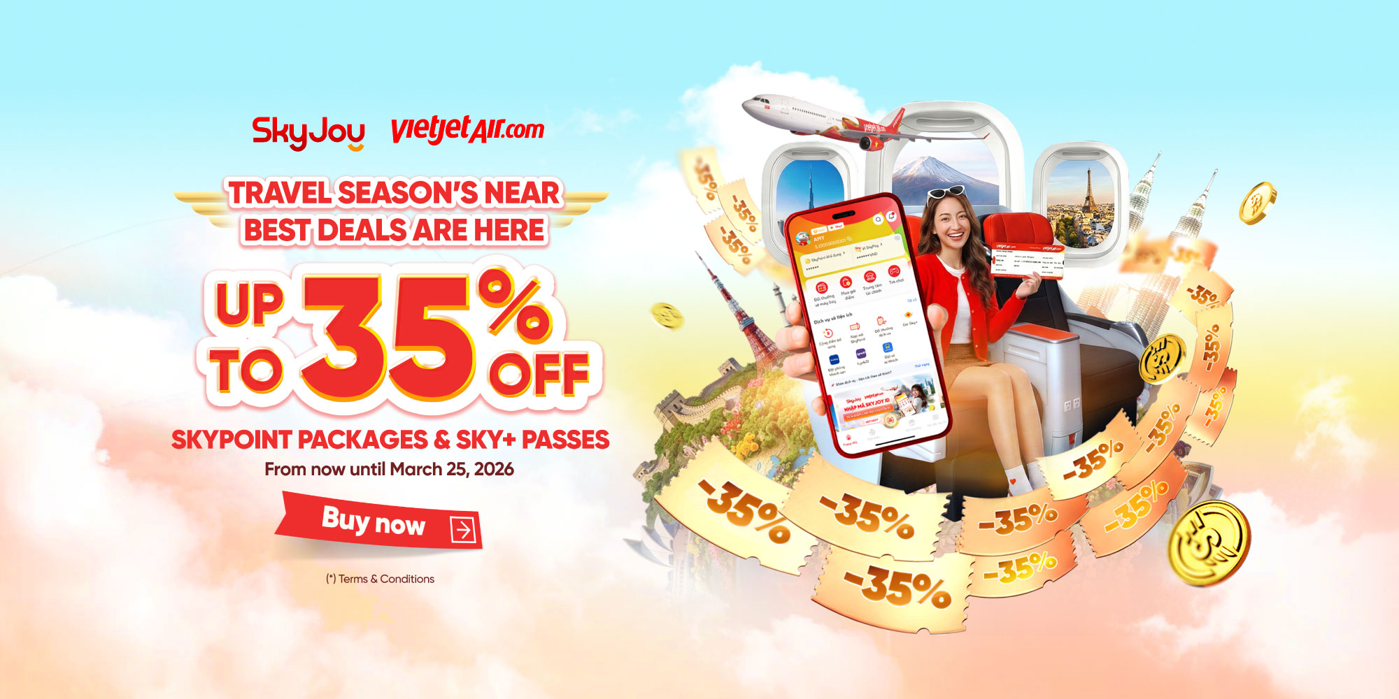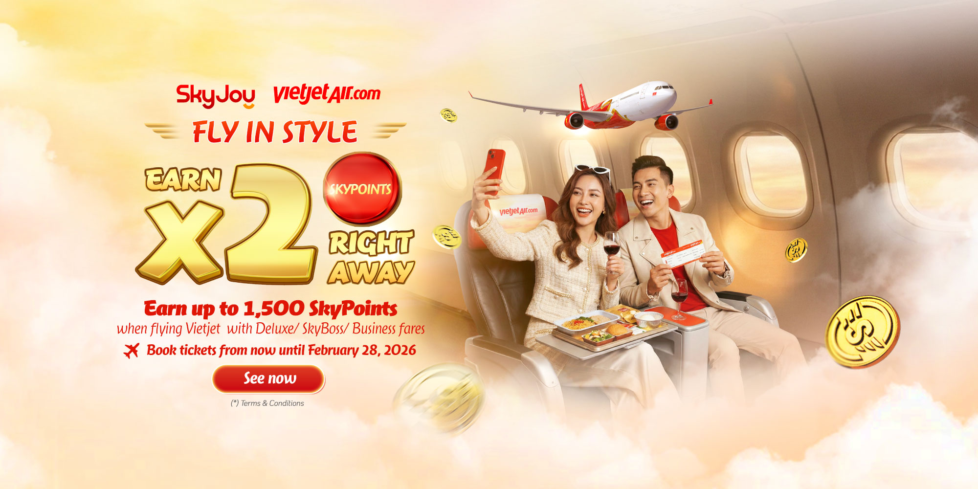Easily earn your SkyPoint with just a platform when flying with Vietjet and experiencing