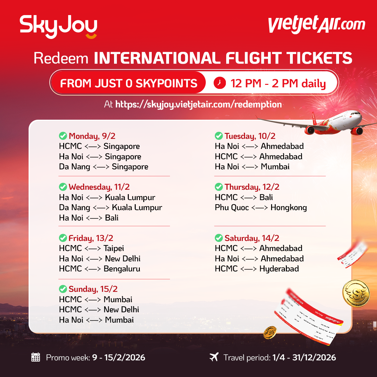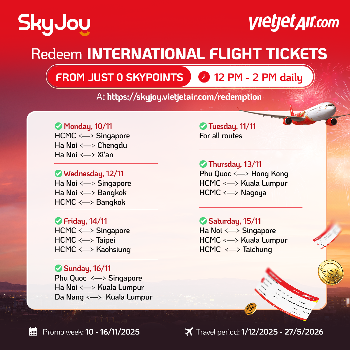 – Members need to complete Account Verification to be eligible for redemption. Please refer to the instructions at: https://skyjoy.vietjetair.com/en/guide-to-verify-your-vietjet-skyjoy-member-account/