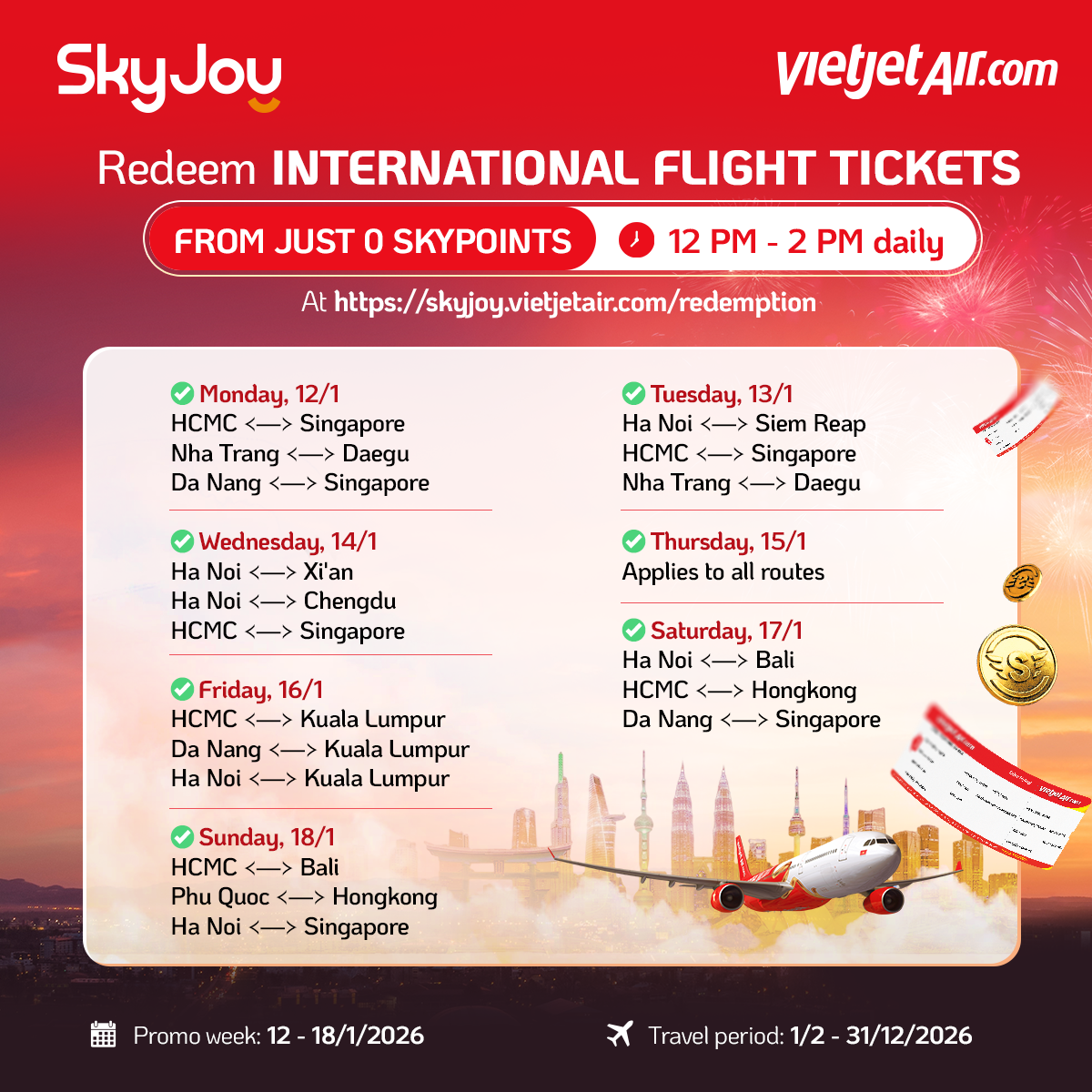2. Ticket eligible for apply promotion: Redeem 0 SkyPoint ticket (excludes all tax and surcharges)