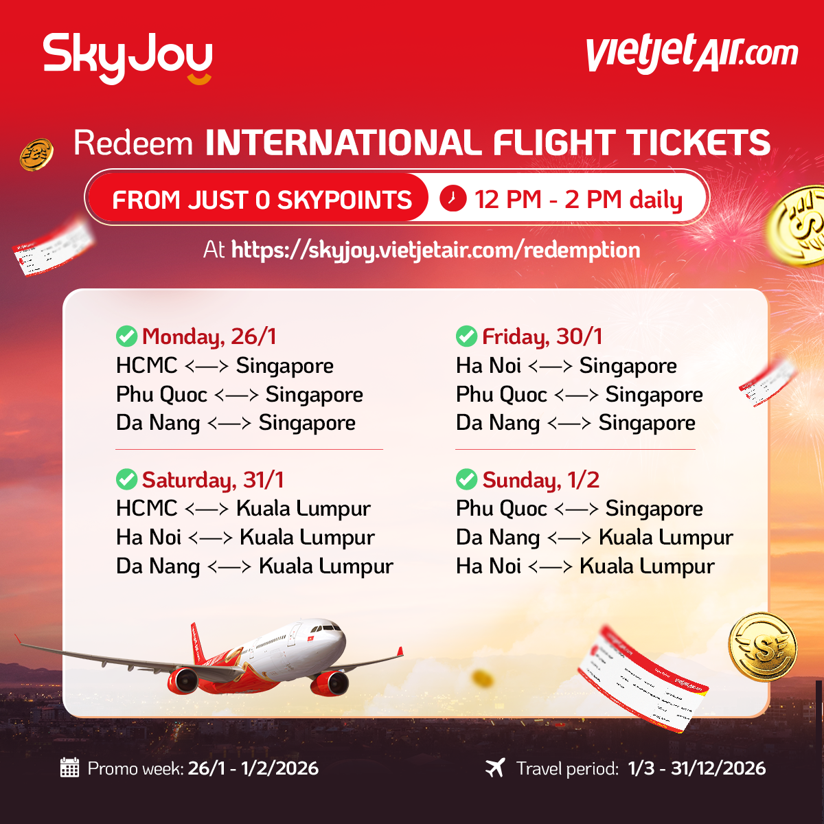 – Members need to complete Account Verification to be eligible for redemption. Please refer to the instructions at: https://skyjoy.vietjetair.com/en/guide-to-verify-your-vietjet-skyjoy-member-account/