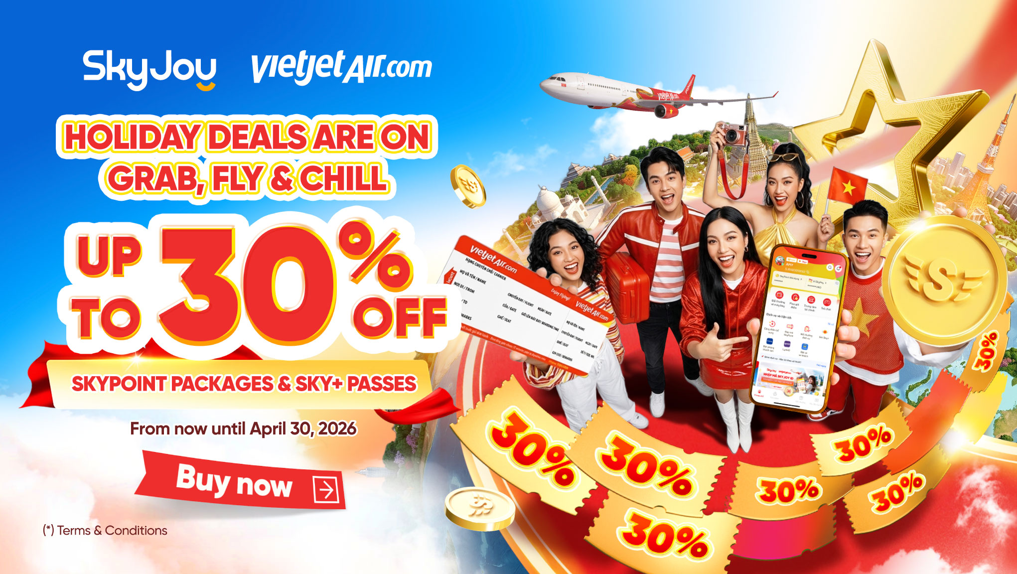 SkyJoy members will earn SkyPoints when flying with Vietjet on Deluxe, SkyBoss, or Business fare types.