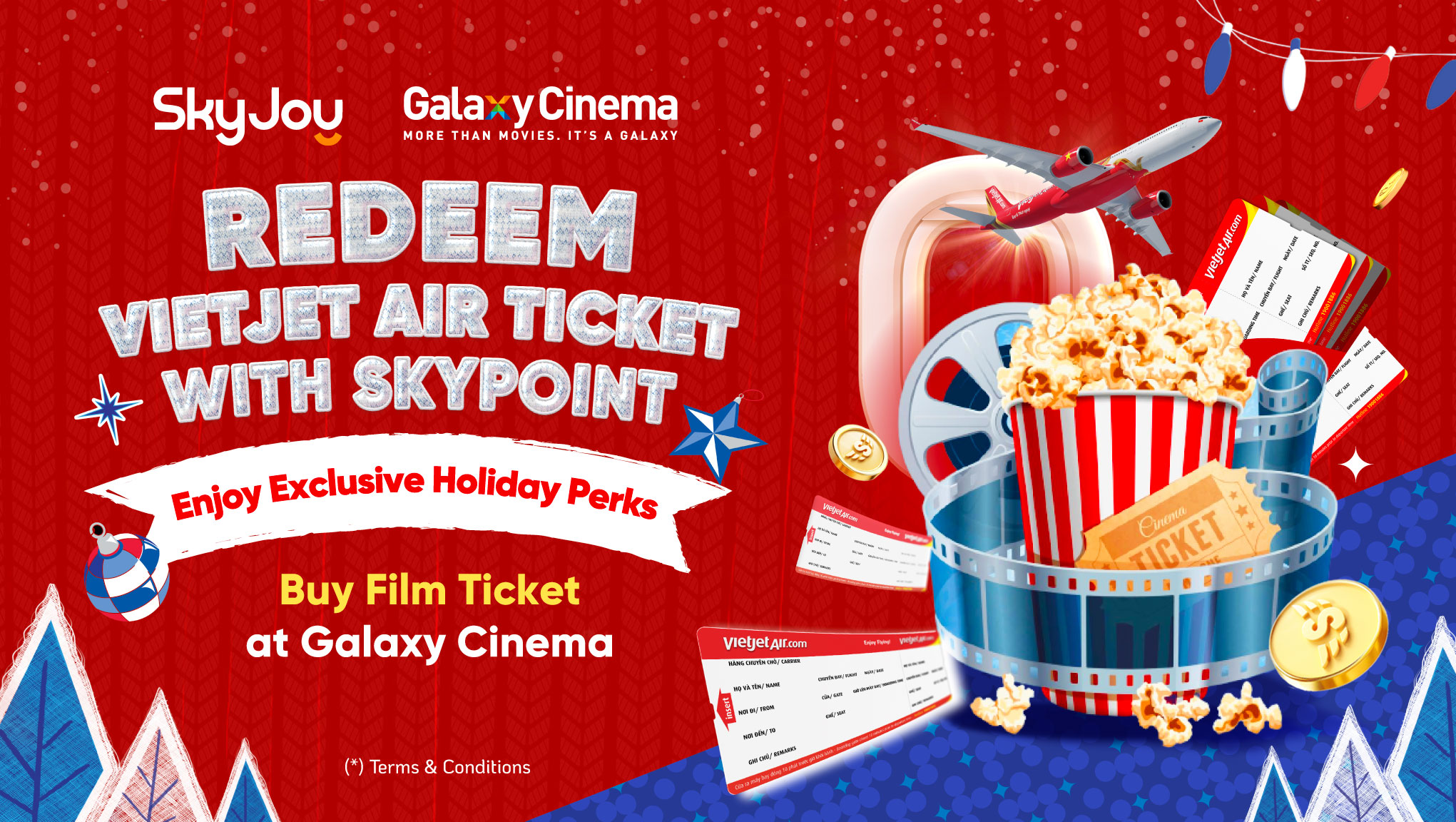 – Rewards: Each customer participating in the “Tất For You – Feliz Navidad – Watch & Win (100% guaranteed reward)” program by Galaxy Cinema has a chance to receive 2,500 SkyPoint from SkyJoy. SkyPoints can be redeemed for Vietjet tickets or vouchers from 250+ partner brands listed on the SkyJoy platform (updated regularly on the official website https://skyjoy.vn).