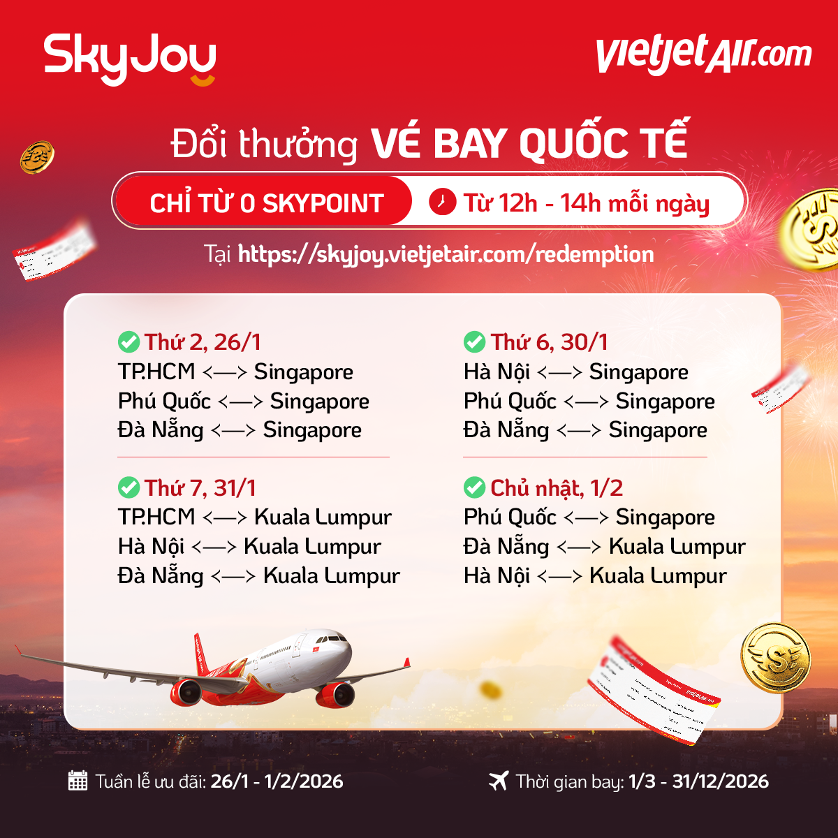– Chương trình có thể chấm dứt sớm hơn khi số lượng vé 0 SkyPoint được đổi hết