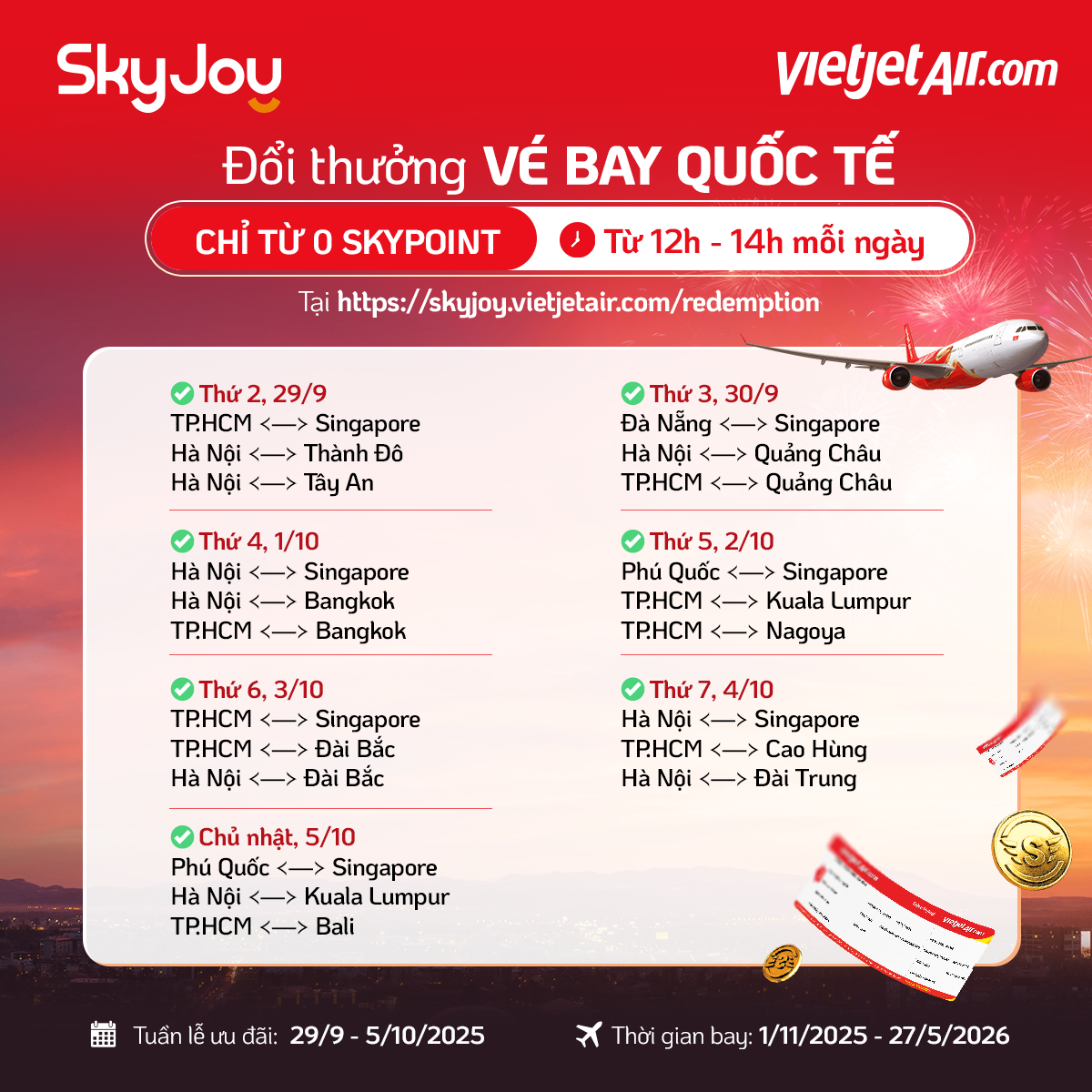 Tại trang đổi thưởng: https://skyjoy.vietjetair.com/redemption