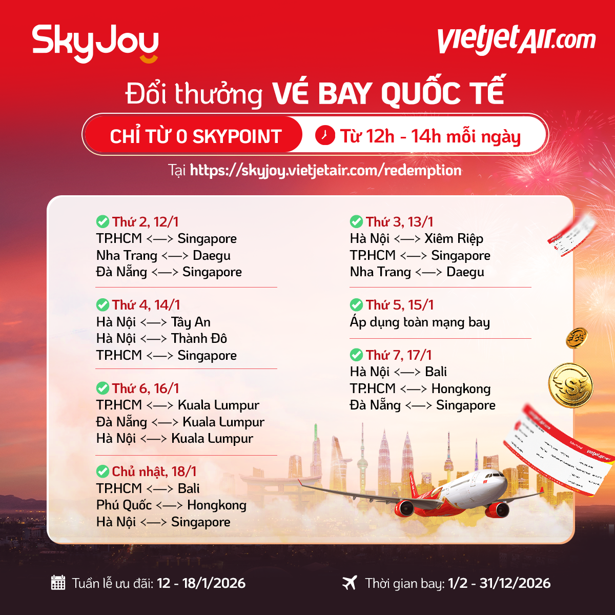 Từ 02/01/2025 – 31/12/2026 (trừ giai đoạn lễ, Tết)