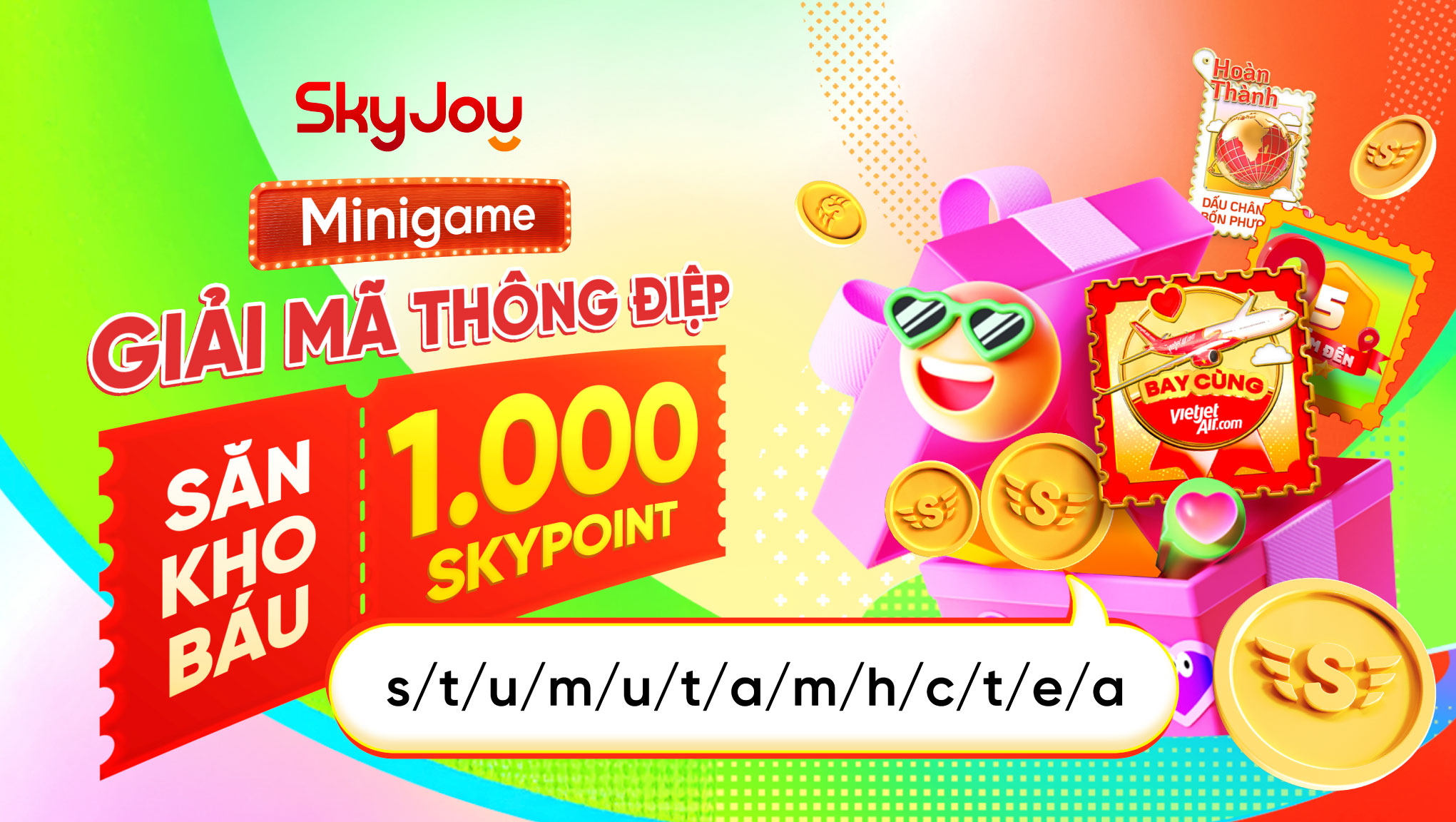 SkyJoy mời bạn tham gia minigame "Giải mã thông điệp - Săn kho báu SkyPoint" và nhận ngay quà tặng 1.000 điểm SkyPoint hấp dẫn!